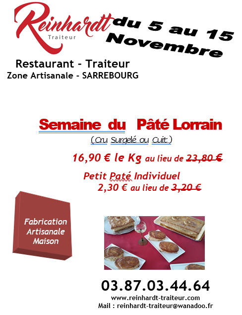 ![]() Dans un cadre agréable et spacieux, le restaurant REINHARDT vous accueille pour vos repas d'affaires ou en famille tous les midis du lundi au vendredi. Vous pourrez vous y restaurer au menu ou à la carte. Sur réservation, la salle de restaurant peut vous permettre d'organiser les soirs ou week-end des banquets, lunchs, séminaires, etc... Notre établissement est ouvert du lundi au vendredi de 8H à 18H et le Samedi de 8h à 12h. Appelez-nous au 03.87.03.44.64 mail : reinhardt-traiteur@wanadoo.fr |